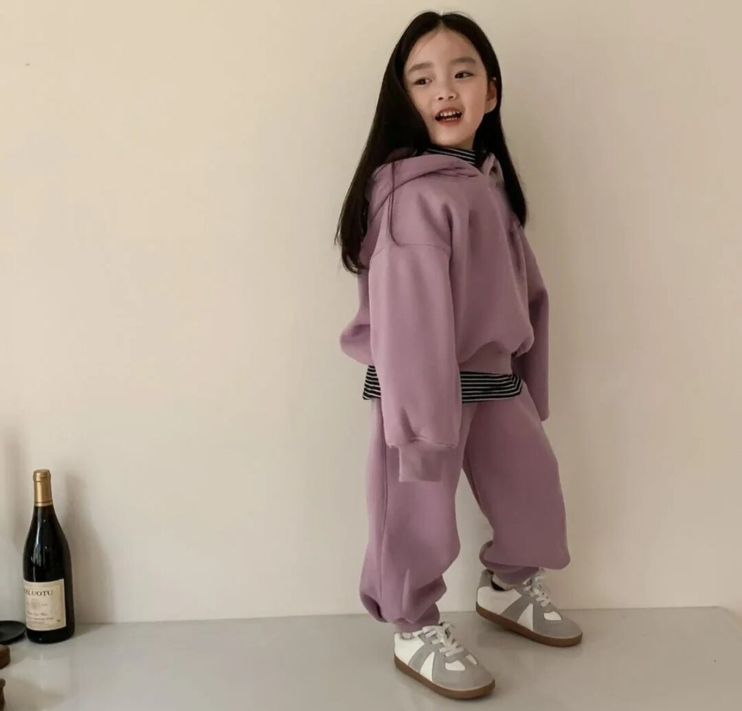 お子様の足元をおしゃれに彩り、快適さを提供する流行色フリースブーティとパンツセット。ぜひ、お子様のスタイリングに取り入れてみてください。