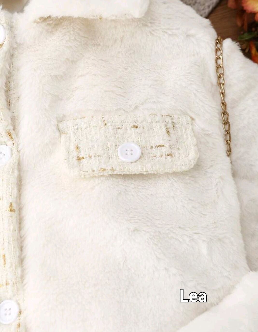 シンプルで上品なデザインの2ピースセットです。ジャケットとスカートのセットで、女の子たちがちょっとお姉さんに見えるおしゃれなコーディネートが楽しめます。
