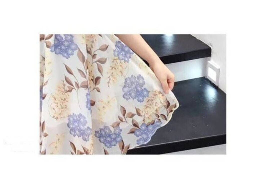 花柄のプリントがポイントで、女の子らしい雰囲気を引き立てます。シルエットはウエストマークができるようになっており、スッキリとしたラインを演出します。ゆったりとしたサイズ感なので、快適に着ていただけます。