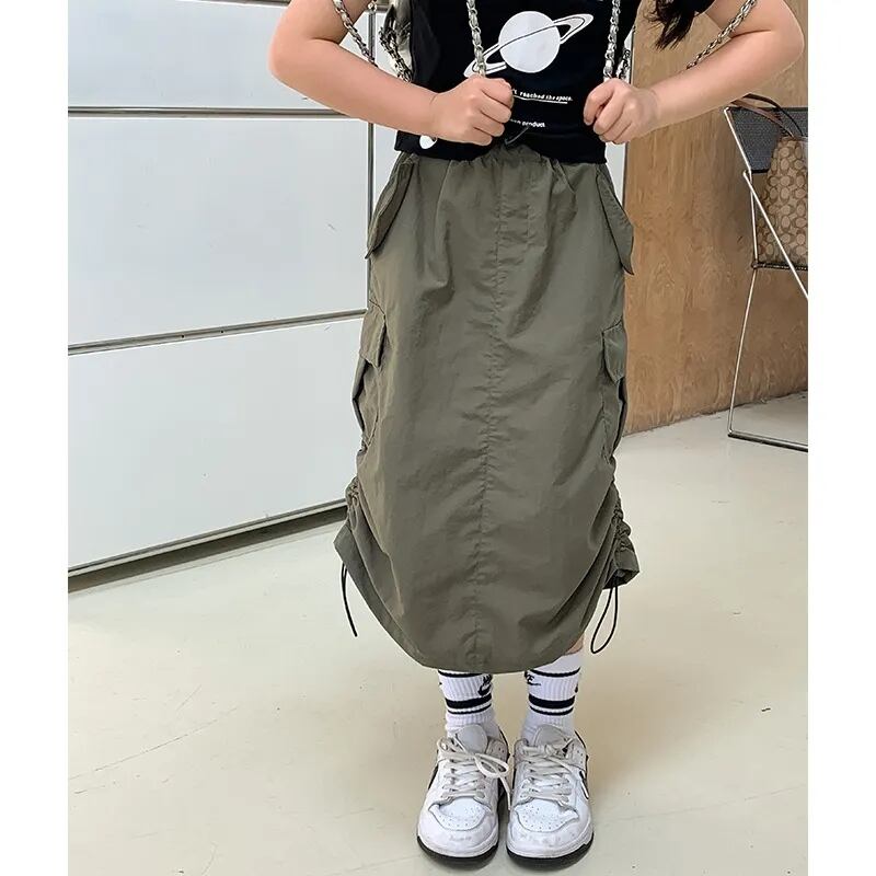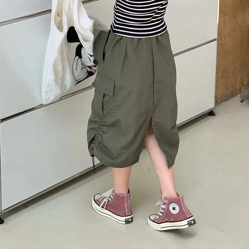 2024年春のトレンドを先取りした、カーゴスカートです。裾の絞りが可愛く、女の子らしいシルエットが魅力です。自然なウエストマークで、スタイルアップ効果も期待できますよ。軽やかな生地感と可愛いデザインで、春夏のコーディネートにぴったりです。