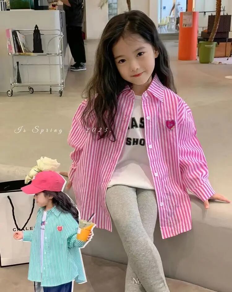 ストライプシャツが新登場!可愛いピンクとグリーンのストライプが、男の子も女の子もおしゃれに彩ります。さらに、胸元にはニッコリハート♡のワンポイントがあり、愛らしさをプラス。双子コーデや兄弟姉妹でのお揃いコーデにもおすすめです。柔らかいコットン素材で、快適な着心地を実現しました。肌触りも良く、通気性もありますので、これからの季節にぴったりです。予約制のため、お早めにご注文ください。お待ちしております。