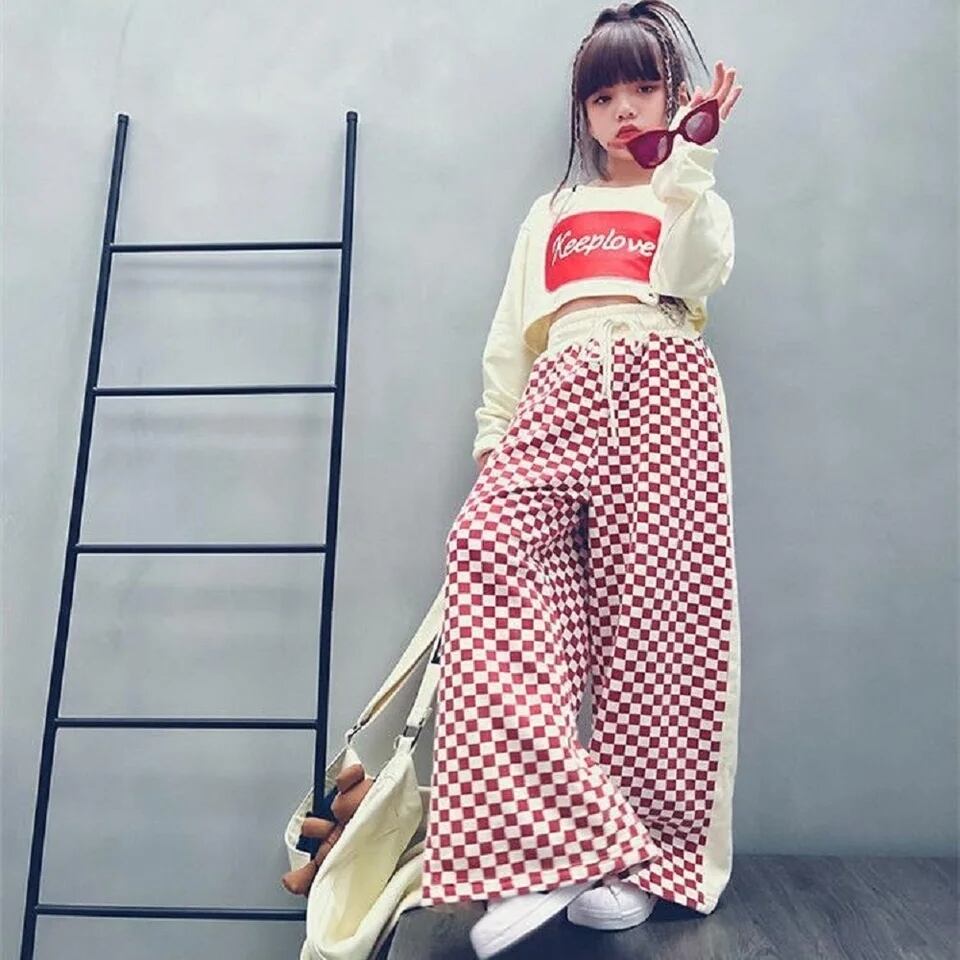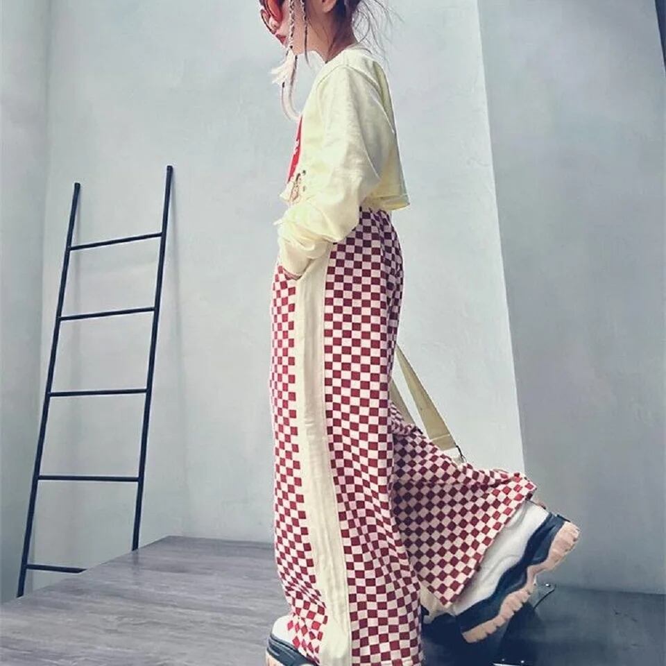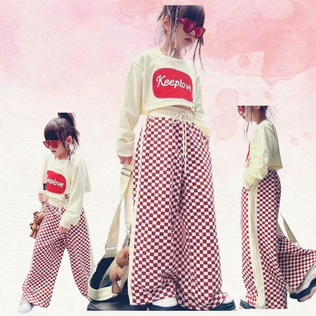 ビビッドなレッドとホワイトのチェック柄が目を引く、クロップトップ+ワイドチェックパンツセット。可愛らしいデザインと遊び心が詰まったアイテムは、一目見ればおしゃれkidsとわかること間違いなし。トップスはクロップ丈で、女の子らしい甘さを残しつつも、ボトムスのワイドチェックパンツと組み合わせることで大人っぽさも演出できます。ストリート感のあるデザインは、お出かけやイベントなど様々なシーンで着回し可能です。
