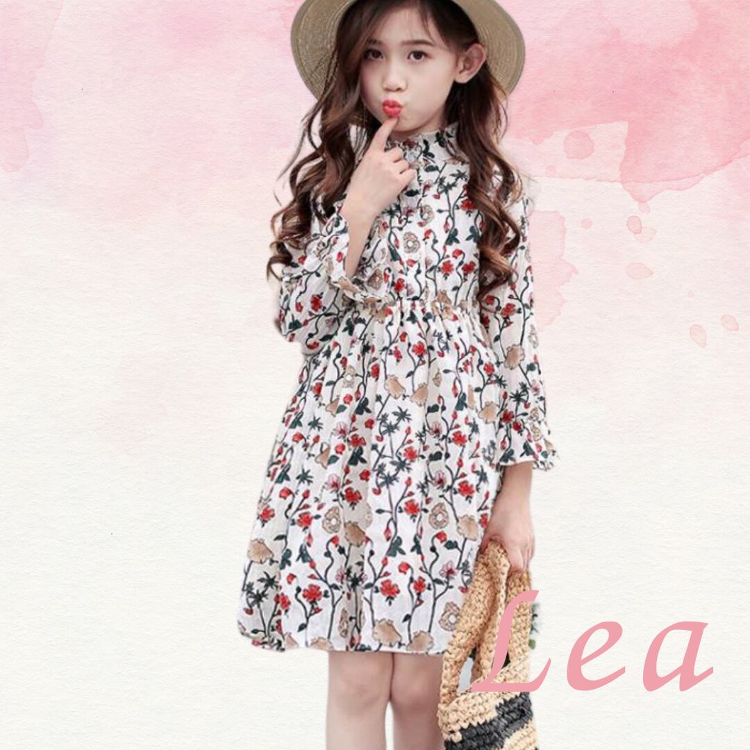 小さな花柄が散りばめられた可愛らしいワンピースは、お子様に愛らしさを引き立ててくれるアイテムです