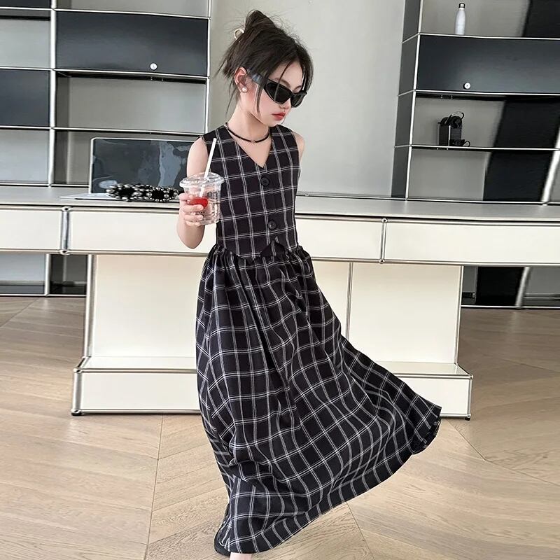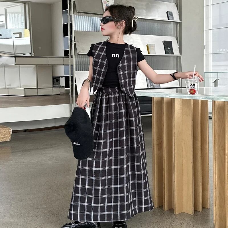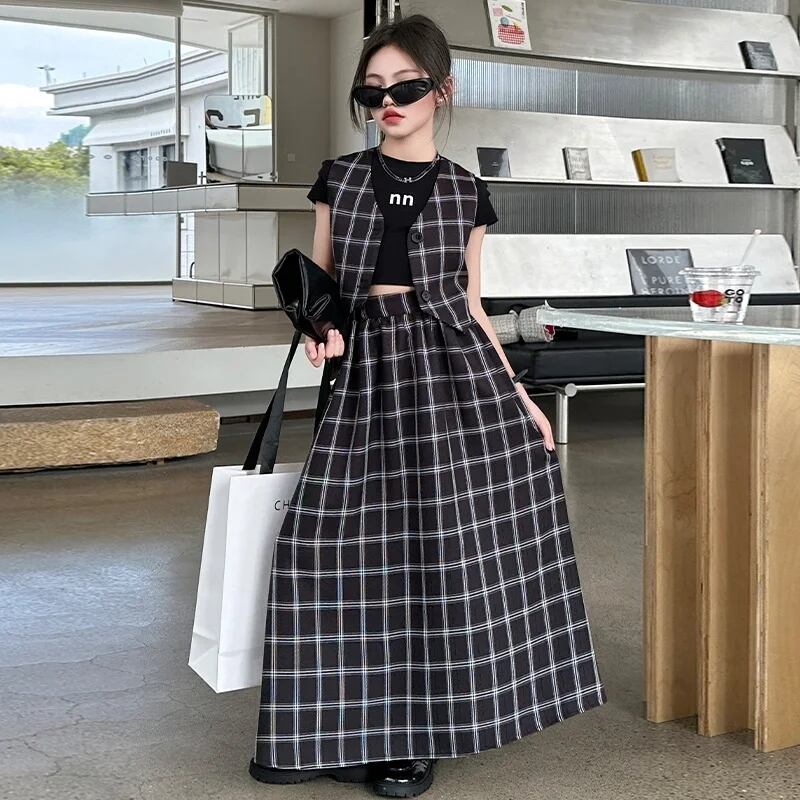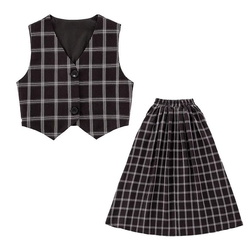 チェック柄ベスト+ロングスカートセット