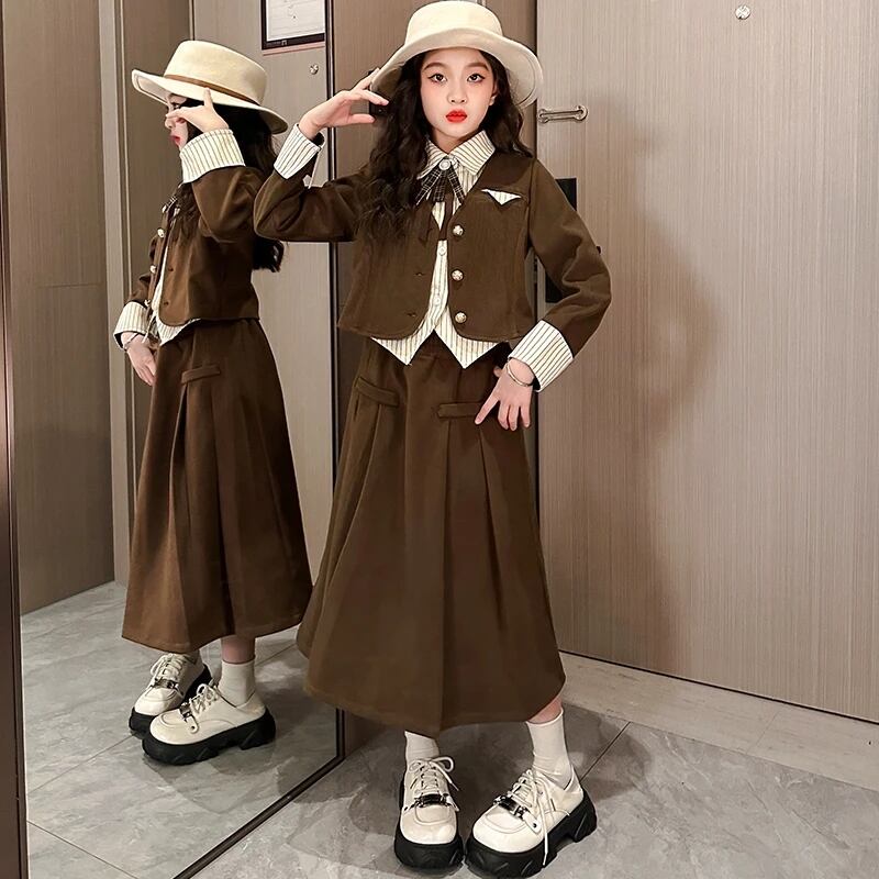 ストライプショートジャケット+ロングスカートセット