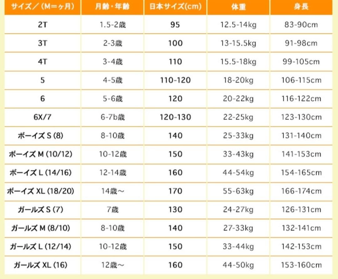 サイズ:S .M .L .XL (Kids米国サイズ)